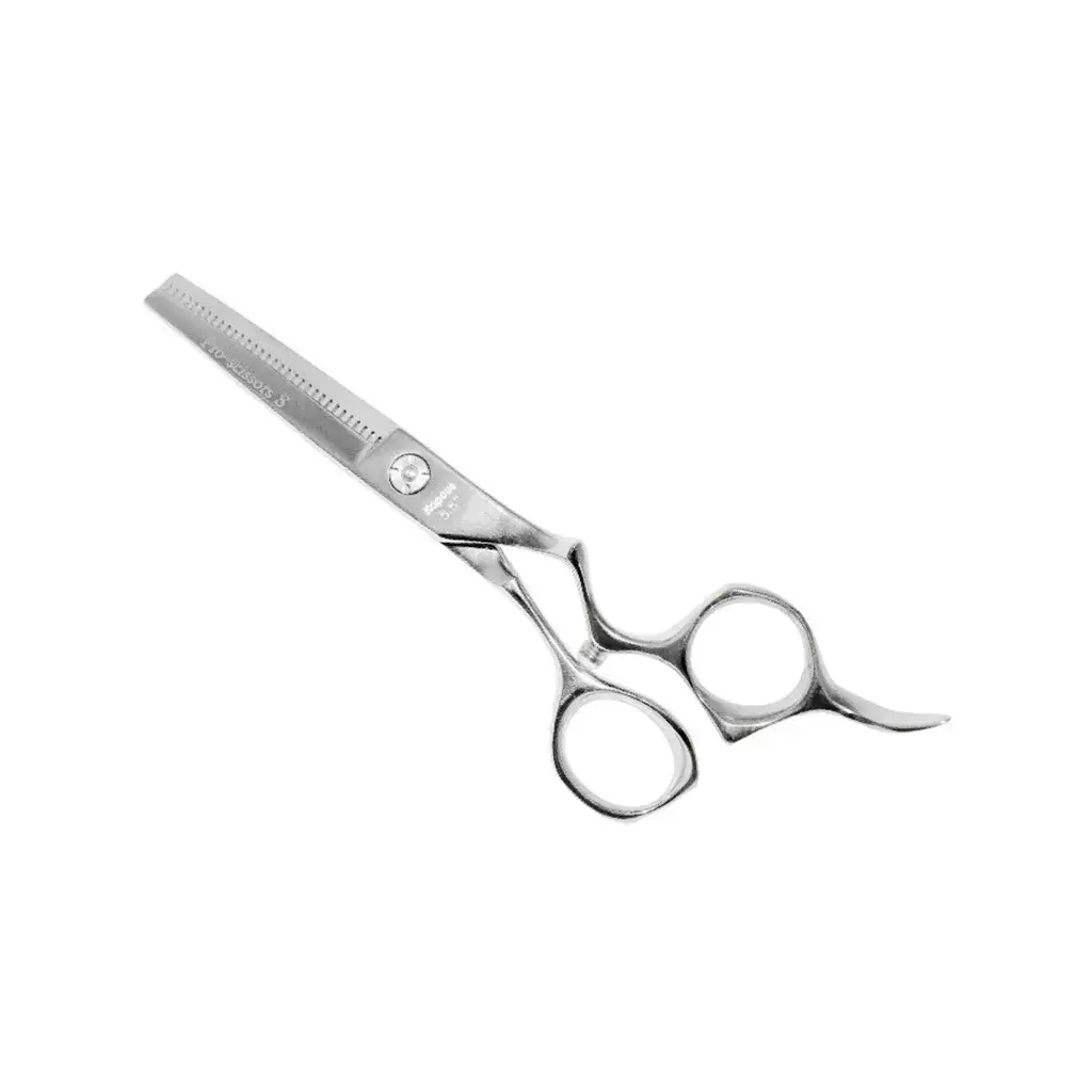 Ультра-эргономичная модель с оригинальной, эксклюзивной формой. Идеально заточенная японская сталь 440 высшего качества с твердостью более 60 HRC, конвекционная заточка 30 градусов и очень острые рабочие поверхности. Винтовая группа со скрытым прижимным механизмом обеспечивает мягкую, точную, пошаговую регулировку ножниц, что позволяет настроить натяжение полотен под любой вид работы. 32 зубца на верхнем полотне.
